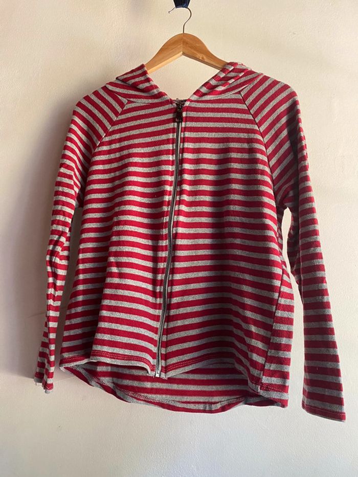 425 - pull à capuche rayé gris et rouge passé composé - photo numéro 1