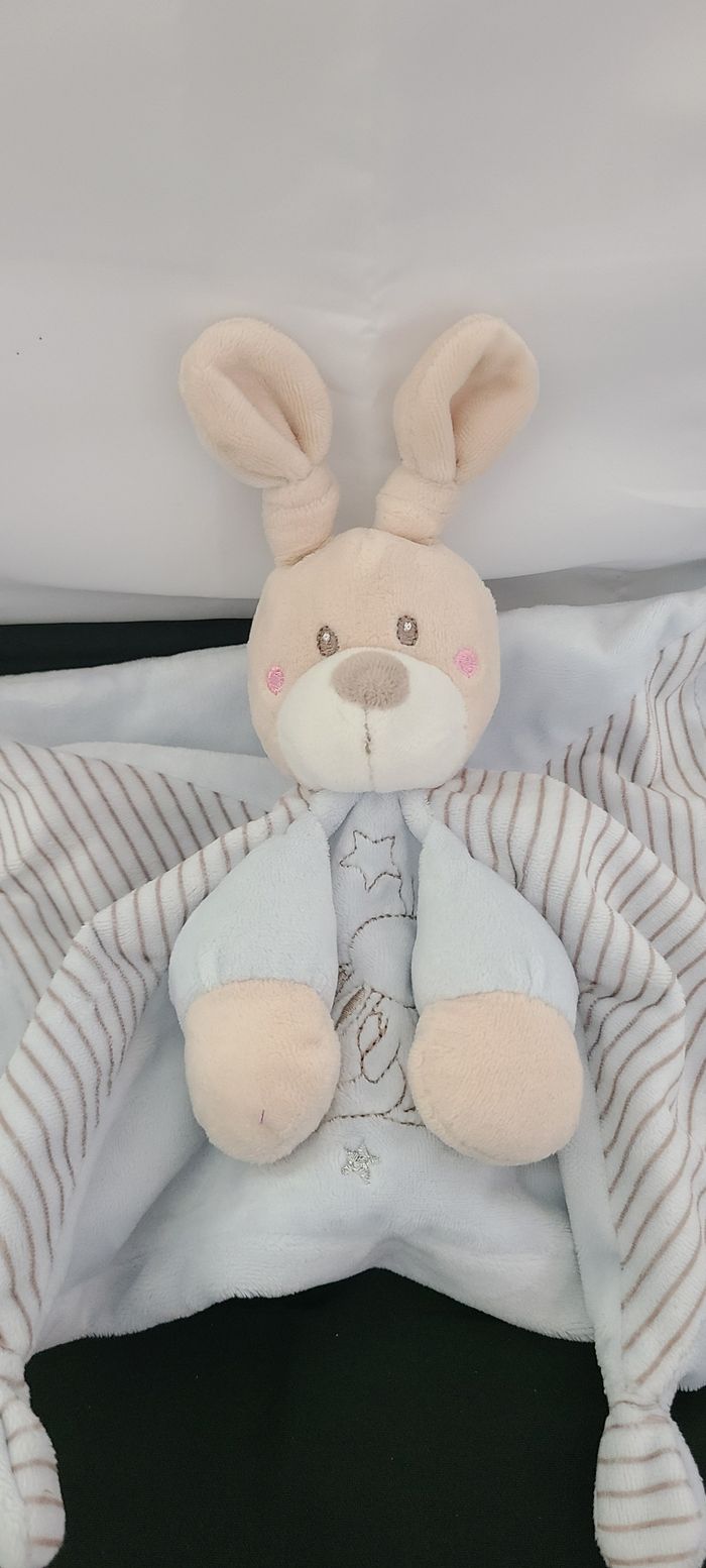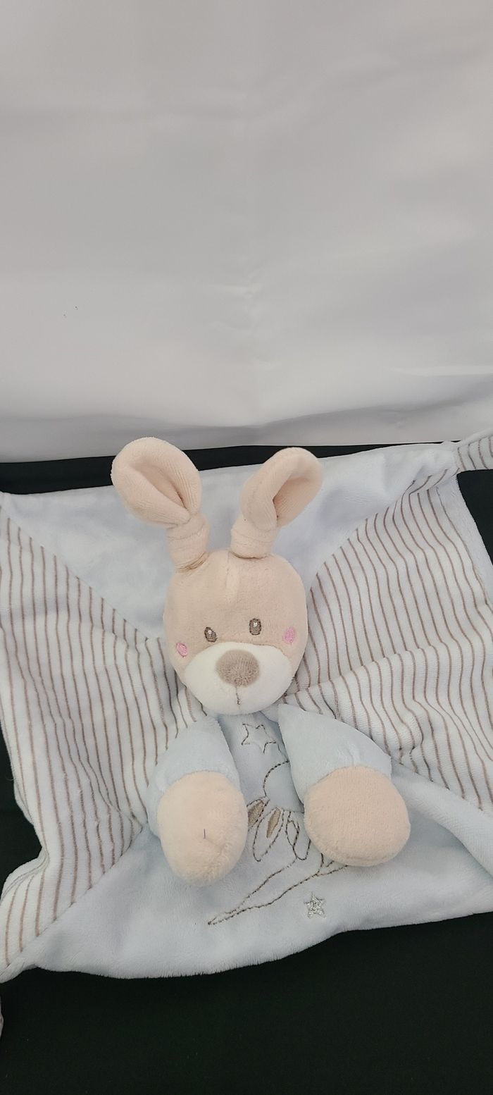 Doudou plat Lapin bleu rayé attache tétine SIMBA NICOTOY - photo numéro 1