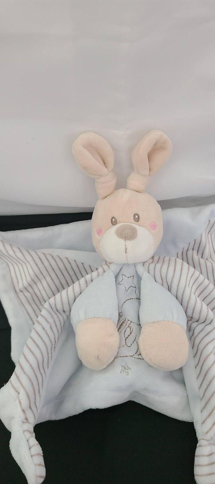 Doudou plat Lapin bleu rayé attache tétine SIMBA NICOTOY 135