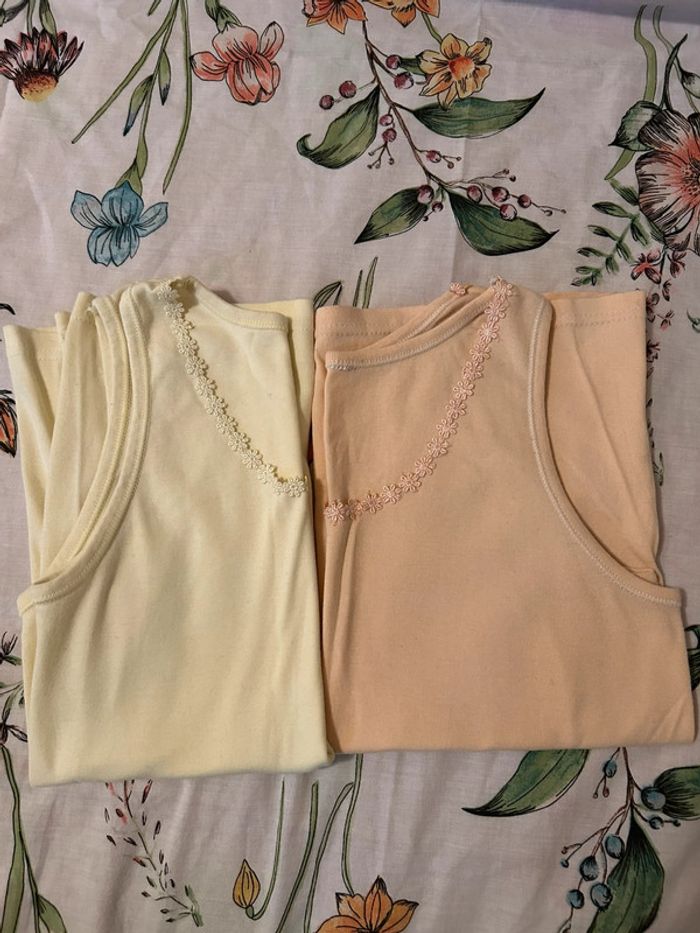 Lot de 2 débardeurs couleur corail et jaune pale, détails fleurs sur le col rond Taille unique En très bon état #vintage #vintedfrance #secondhandfashion #outfit #ootd #fashion #secondhand #minimalist #aesthetic #parisianstyle #paris #vintagelook #vintageclothes #vintagestyle #dressingchallenge #tendance #springstyle #spring #springstyle2025 #printemps2025 #printemps #summer2025 #summer Minimalist style Parisian style Neutral style Old Fashion Whimsigoth La senza brandy halter neck boys top zip up knit Chic Duchesne meringue rockabilly mercredi wednesday Aesthetic rock Bohème Stockholm style bohemian psyché Parisian hippie Copenhagen style vaporeuse french fluffy américain paillette brodé romantique doré champêtre 80s 70s rétro Space âge edad año aesthetic lyce liceo fairy Univ universidad fais main mallone chaqueta transparente fan soie brodé disney popeline Crochet Gonflé estrecho collo col rondo cuadrado 2000 y2k deadstock 00s challenger bouffant seventies bariolé oversize Made in France houndstooth pata de gallon sauge Pied de Poule fatto mano hecho por mano fais main coton arc-en-ciel rainbow texturé mystique élégante chic & jeune indépendant bridgerton