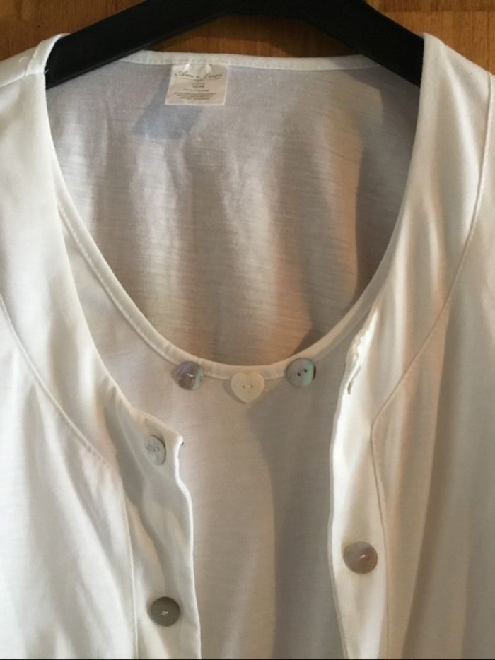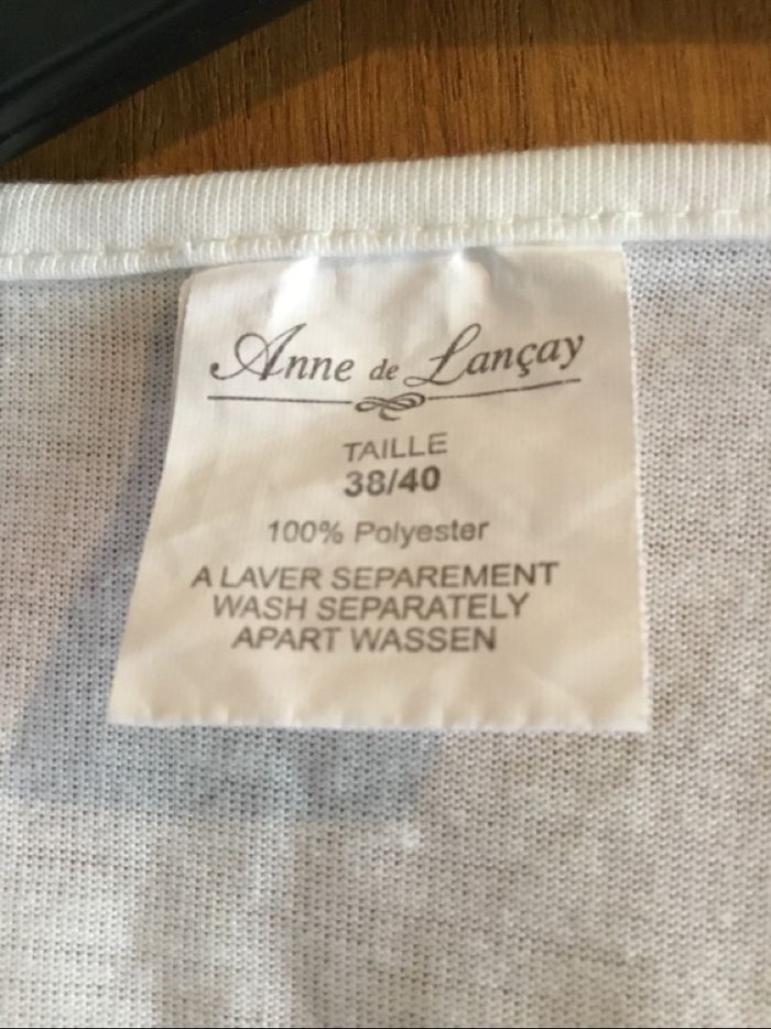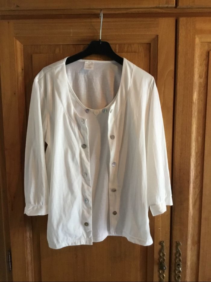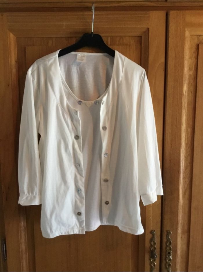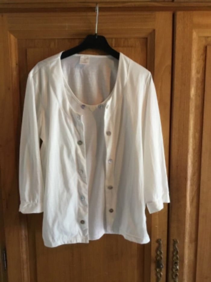 T-shirt avec gilet manches longues. Boutons devant.fendus sur les côtés.100% polyester.taille 38/40.