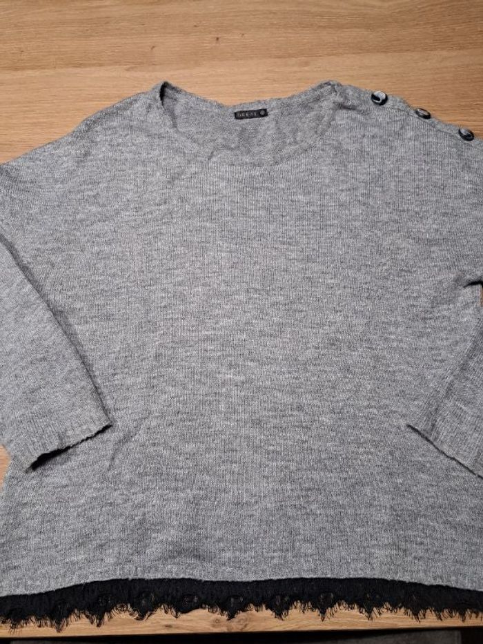 Pull avec finition dentelle noire en bas 3 boutons sur épaule gauche Coupe assez ample Porté mais reste en bon état légères petites bouloches mais se voient à peine #silak9femme42 #pullfemme42 #breal #breal42 #pullbreal42