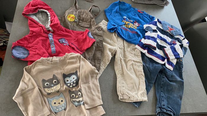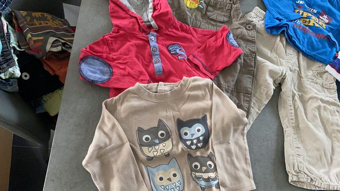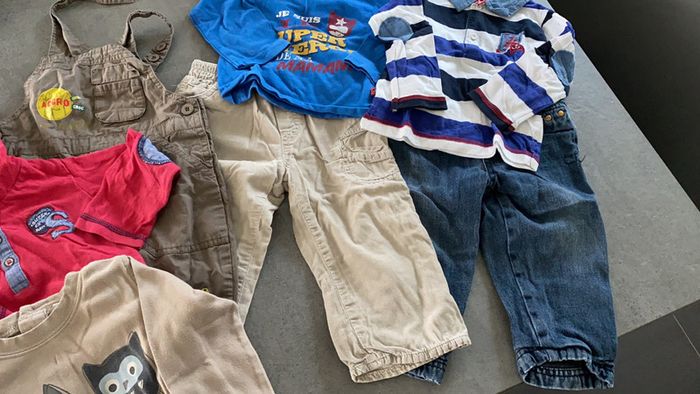 2 pantalons (dpam, grain de blé) une salopette sans marque 4 tee shirt manche longue tissaia réduction sur les lots #vetjul18mois
