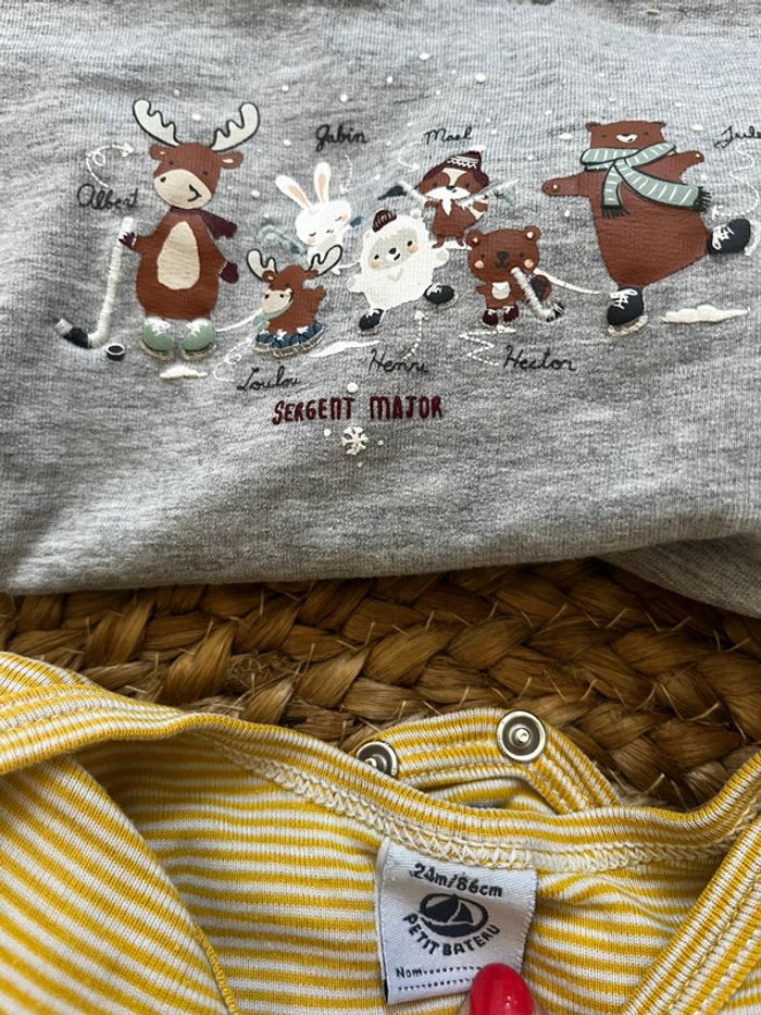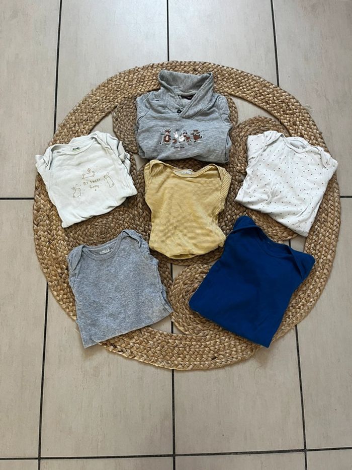 Lot de 6 bodys manches longues Plusieurs marques : Petit Bateau, Kiabi et Sergent Major 2,50€ le lot.