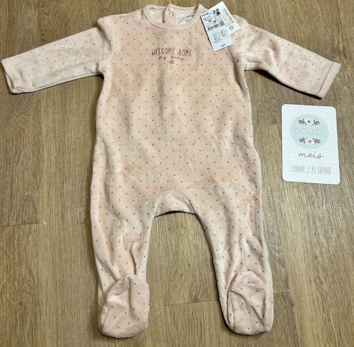 • Pyjama velour Rose à pois pailletées Taille 12 mois Neuf avec étiquette