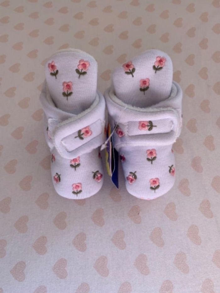 • Chaussons fleuri Neuf avec étiquette Taille 0-6 mois