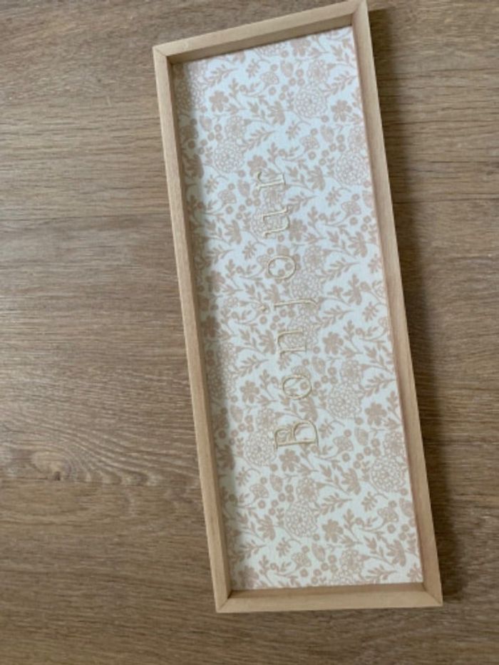• Cadre fleuri en bois (mais très léger) Maison du monde Neuf avec étiquette Écriture « boniour » 40×15 Deux exemplaires à vendre