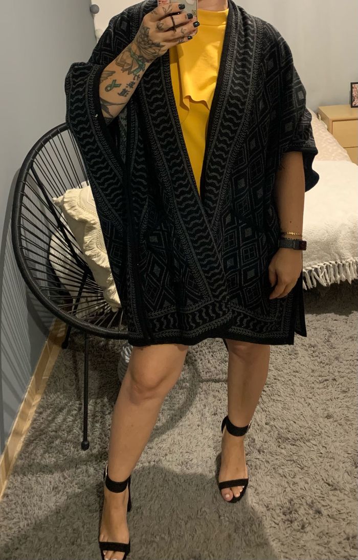 •Kimono /Poncho Motifs géométriques État casi neuf Matière épaisse (lainage) Peut aller à n’importe quelles tailles car effet loose Valeur 39,99€