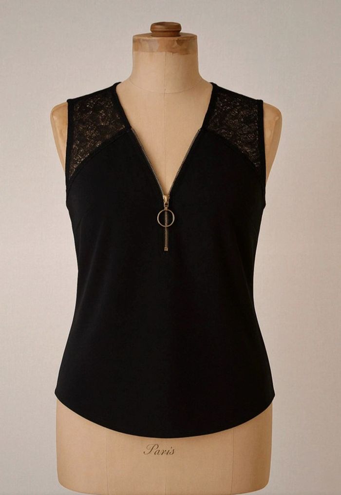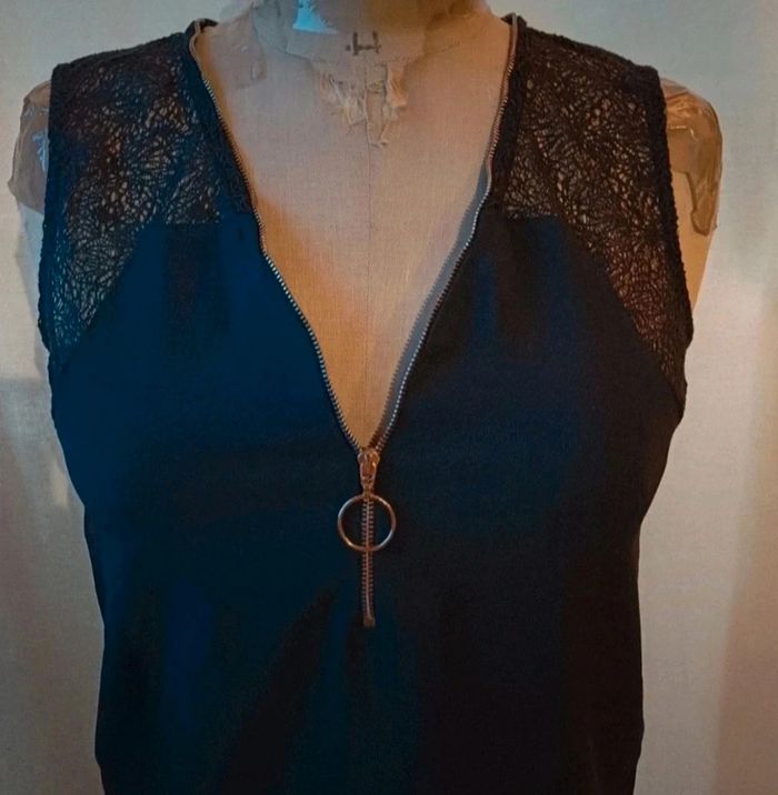 🖤 Top sans manches noir - Morgan de Toi - Taille 36 🖤 Élégant top noir Morgan, taille 36. Décolleté en V avec fermeture zippée dorée et anneau décoratif, empiècements en dentelle ajourée sur les épaules. Tissu fluide, coupe féminine, parfait pour un look chic ou une soirée. 📏 Taille : 36 📌 Marque : Morgan de Toi 🧵 Matière : 88 % polyester, 12 % élasthanne / dentelle : 80 % polyester, 20 % coton 📸 Très bon état - peu porté #MorganDeToi #TopMorgan #ModeFemme #Taille36 #LookChic #TopNoir #SecondeMain #VêtementsMorgan #femme36 #topfemme36 #hautnoir36 #morgan36 #blousefemme36