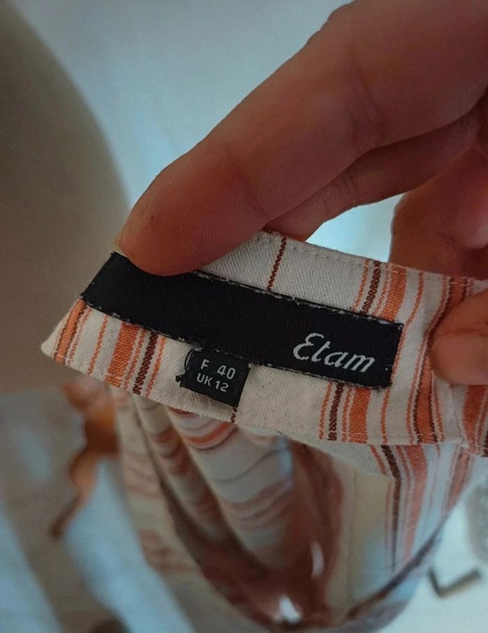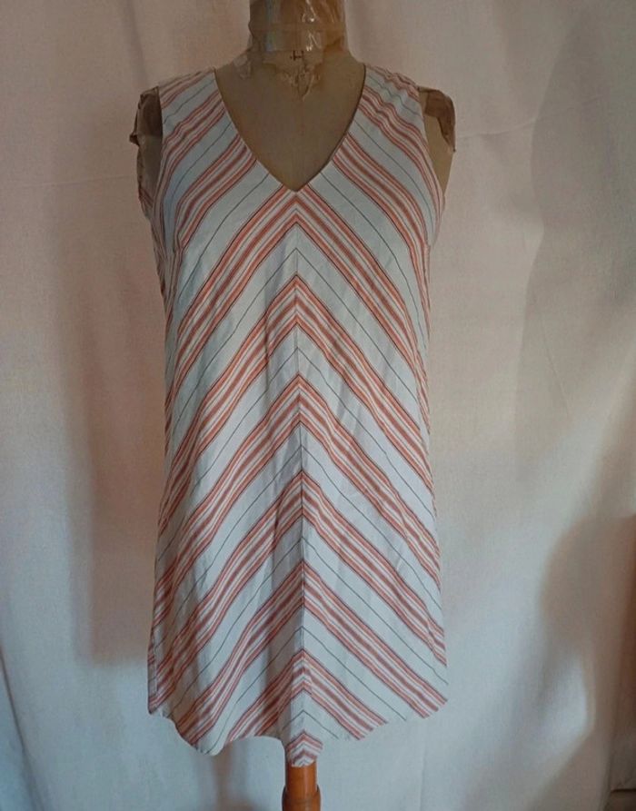 🌼 Robe sans manches à rayures Etam 🌼 📏 Taille : F 40 / UK 12 🧵 Coupe droite, col en V, motif chevrons dans les tons orange et blanc. 👗 Fluide et légère, parfaite pour l’été ou la mi-saison ! 📦 Très bon état 📍Remise en main propre ou envoi possible #Etam #RobeEtam #RobeÉté #LookEstival #Taille40 #UK12 #ModeFemme #SecondeMain #Vinted #SlowFashion #RobeRayée
