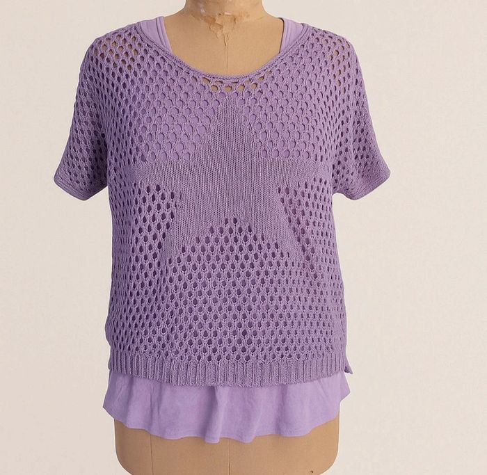 Top violet ajouré avec étoile – Fabriqué en Italie 🇮🇹 Magnifique top en maille ajourée violette, avec une grande étoile tricotée ton sur ton à l'avant ⭐. Superposé à un débardeur assorti pour un effet bohème chic. Très doux et agréable à porter. 🔸 Fabriqué en Italie 🔸 Matière débardeur : 95 % viscose – 5 % élasthanne 🔸 Taille 36 /38 🔸 En très bon état Parfait pour un look original, confortable et tendance ✨ 📦 Envoi rapide et soigné #TopViolet #LookBohème #MailleAjourée #MadeInItaly #TailleUnique #LookÉtoilé #ModeFemme #SlowFashion #FriperieChic #SecondeMainStylée #VintedFrance #LookColoré #YammuModa #femme36 #topmailleajourée #mailleajoure38