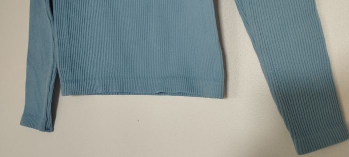 Joli fin pull "chaussette" Neuf élastiqué ! d'un joli bleu lavande ! 93% Polyamide et 7% Elasthanne.