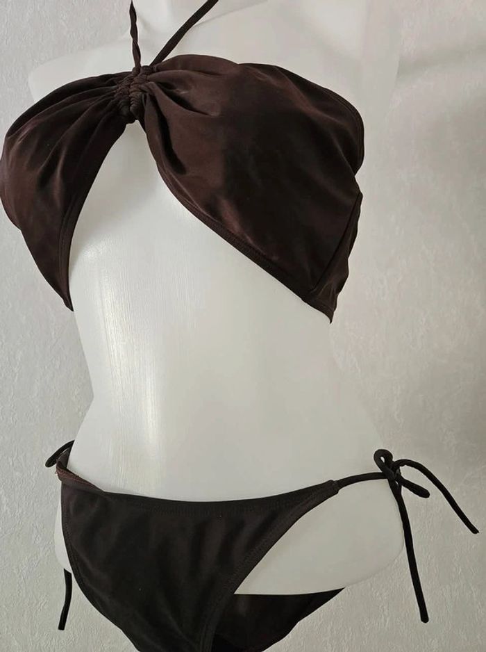 Maillot de bain. Gémo. Tailles : Haut : 44. Bas : 38. Deux nuances de marron différentes Possibilité de mettre un rembourrage #Valex_FemmesSousVêtementsMaillotsDeBain