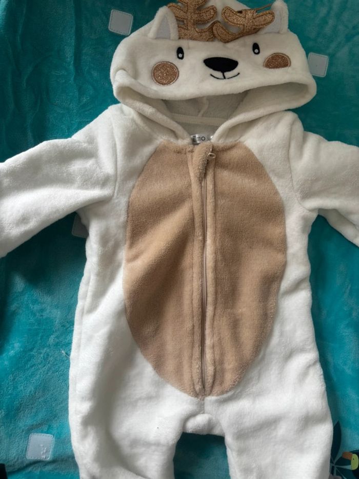 Combinaison reine de Noël blanc et beige taille 3 mois étoile en relief très bon état mixte