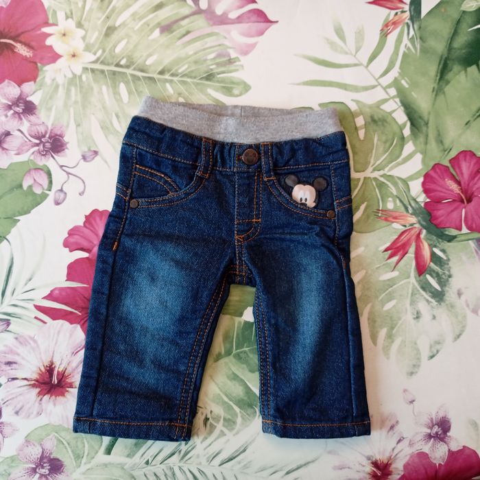Jean bleu foncé avec dessin en excellent état. Taille: 3 mois Aux choix dans mon dressing , 5 articles pour 8 euros sur tous les vêtements