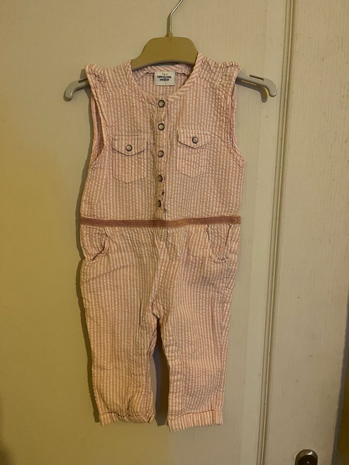 Vends combinaison pantalon rayée blanche et rose en très bon état. Taille 6mois