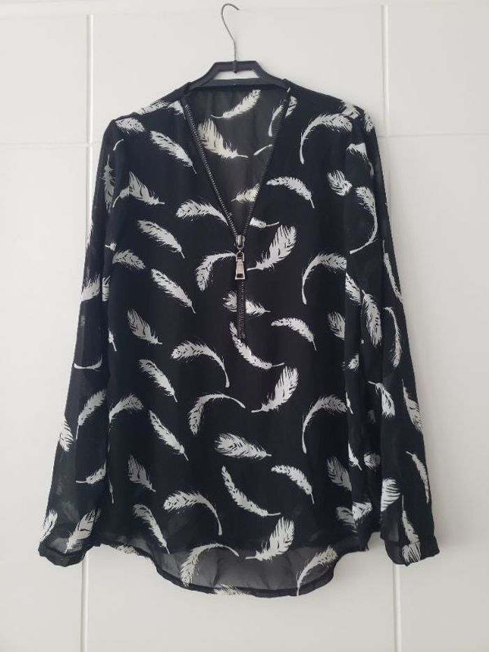 Blouse plume noire et blanche