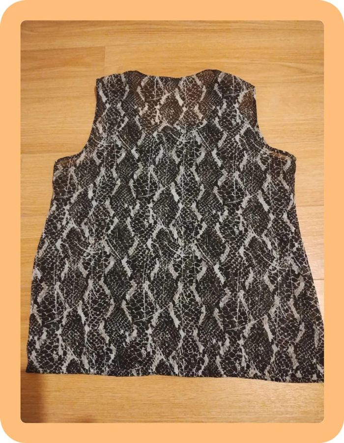 Maillot sans manches transparent marque esmara en très bon état taille 42 à mettre avec un débardeur en dessous. Motif peau de serpent.