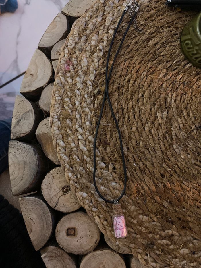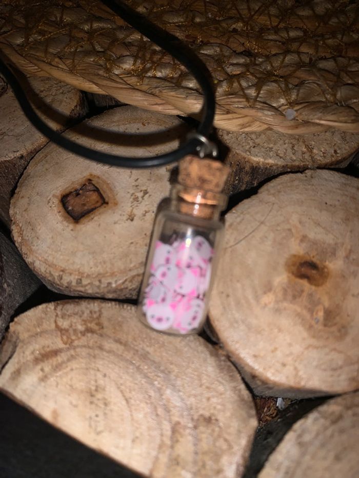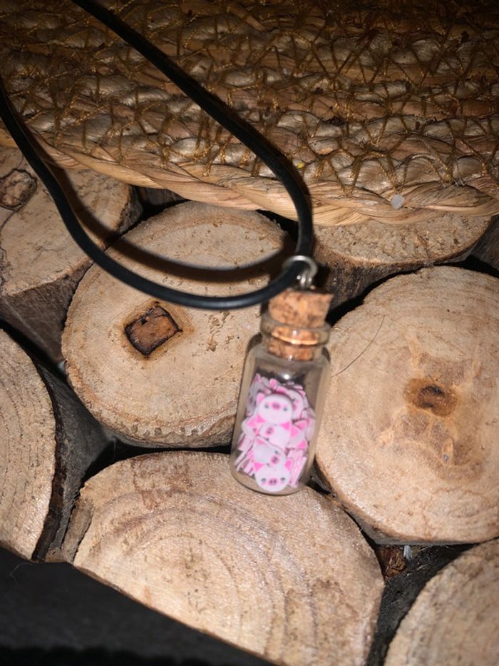 Collier fantaisie avec motif petit cochon 🐷 rose , avec cordon caoutchouc réglable Mini Bouteille #collier,fantaisie #cochon,bouteille