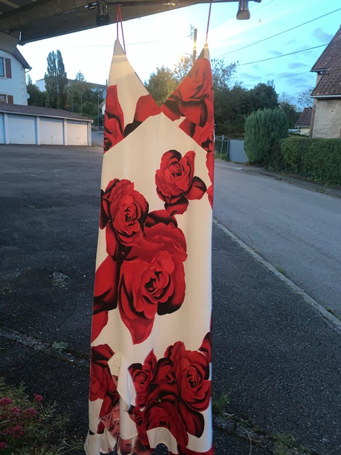 Robe très peu portée Motif rosesouverte sur le bas Taille S/M #robe,chic# #rose,soiree#