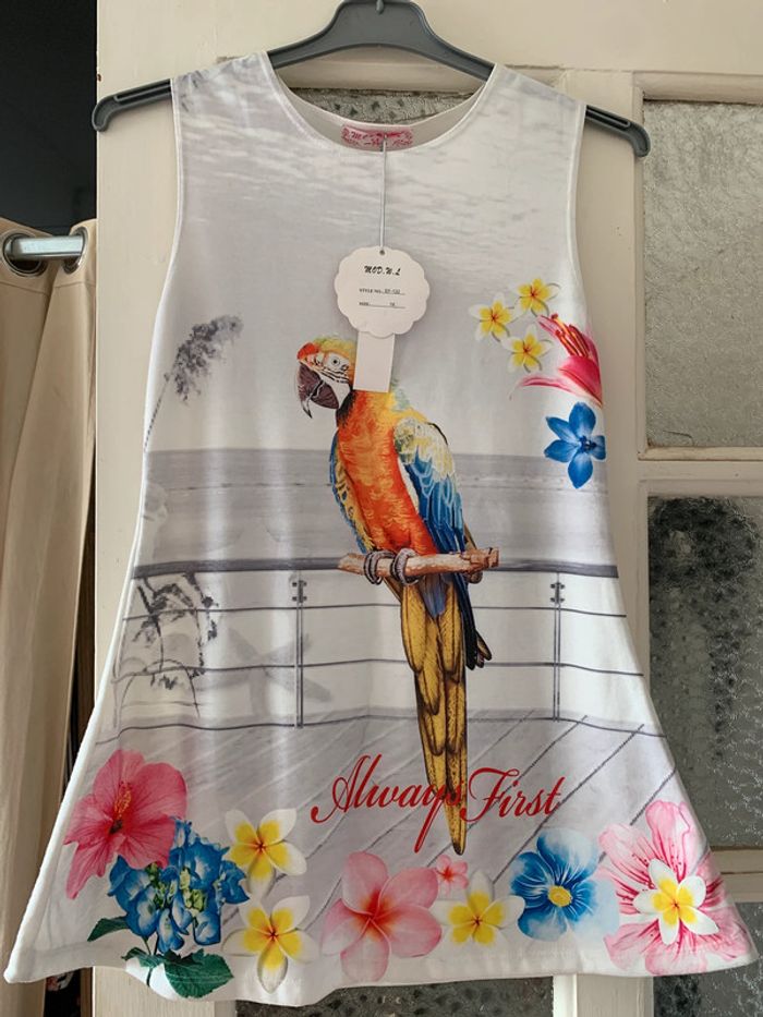 Robe jamais portée Motif perroquet Taille 14 ans #robe,animaux# #reduction,lot#