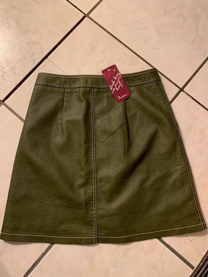 Jolie jupe simili cuir kaki - vert foncé Fermeture éclair Taille S 36-38 Neuve #printemps#chic#neuf#simili#cadeau#rock#