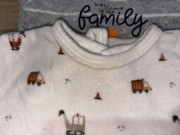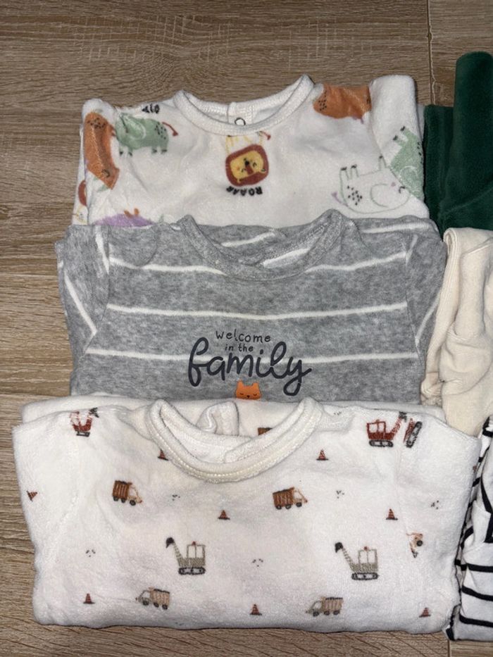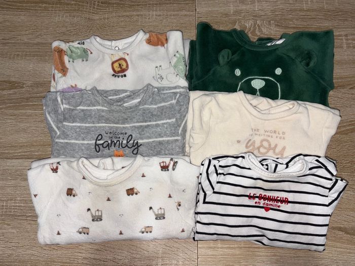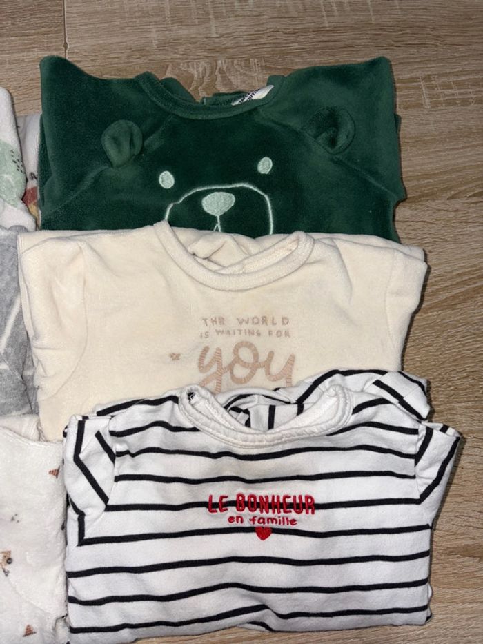 5 pyjama épais 1 pyjama léger 2 comporte qualité tache au niveau du col mais très légère ( voir photos ) Taille 9 mois Kiabi / tape à l’œil Lot 76