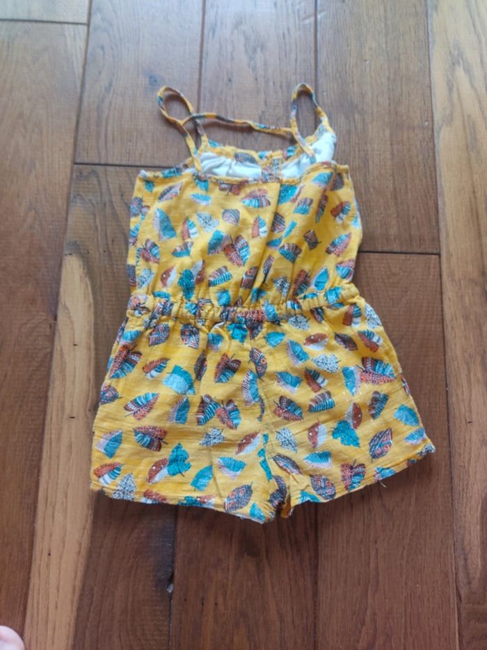 Combishort jaune avec fils argenté. Motif feuilles. Très belle. Boutons à l'avant. Taille 6 ans. Très bon état. #mathigelfille6ans