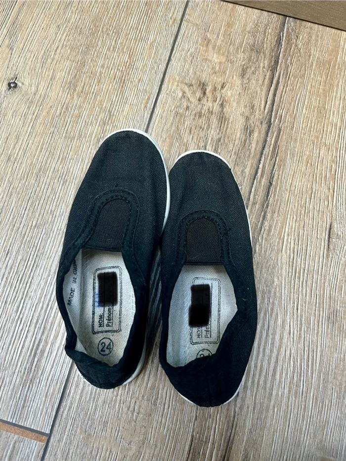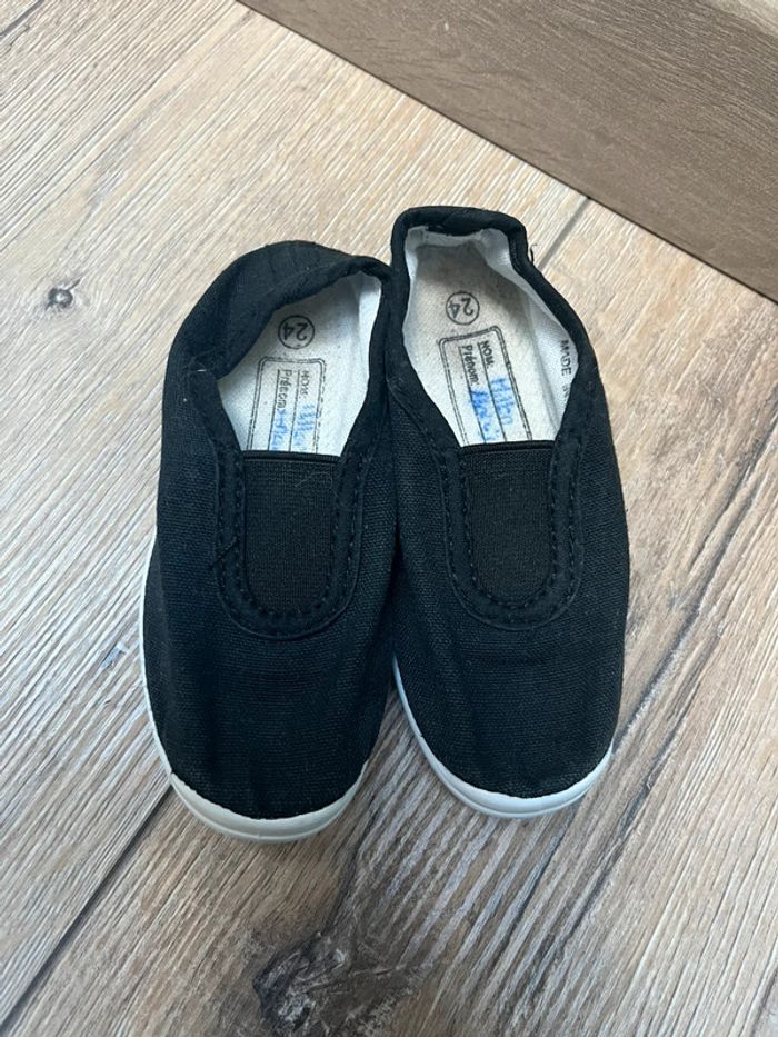 Ballerines en toile noire , semelles blanches Avec élastique sur le dessus du pied Idéal pour la gym , la danse, les kermesses ou même en pantoufles Fille / garçon / mixte Taille 24 Juste le nom de ma famille apparaît sur l’étiquette intérieur et les initiales sur la semelle Bonnes pour une seconde vie 😉 👀👀👀⬇️⬇️⬇️👀👀👀 #monvidegrenieronlinekids #monvidegrenieronline24 👞 👧🏼