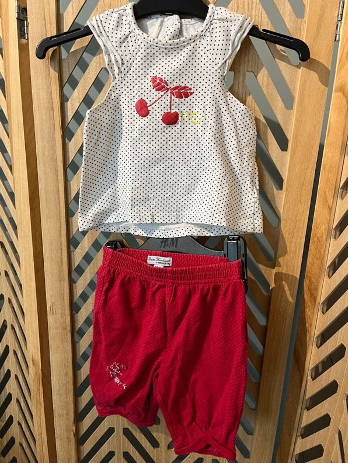 Mignon petit ensemble à pois Orchestra Idéal pour l’été Un t shirt sans manches mais jolie découpe sur les épaules blanc à pois noir Un pantacourt rouge à pois Haut 9m & bas 18m mais ça allait à mes filles en même temps et elles adoraient le porter l’été 👀👀👀⬇️⬇️⬇️👀👀👀 #monvidegrenieronlinebb #monvidegrenieronlinebb9m 👧🏼