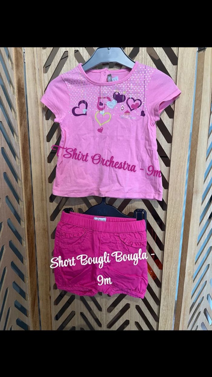 Ensemble bébé fille 9 mois pour l’été T Shirt manches courtes rose , motifs violet et pois argenté , Orchestra Et un petit short rose fushia , Bougli bougla 100% coton Le tout en très bon état 👀👀👀⬇️⬇️⬇️👀👀👀 #monvidegrenieronlinebb9m #monvidegrenieronlinebb ☀️
