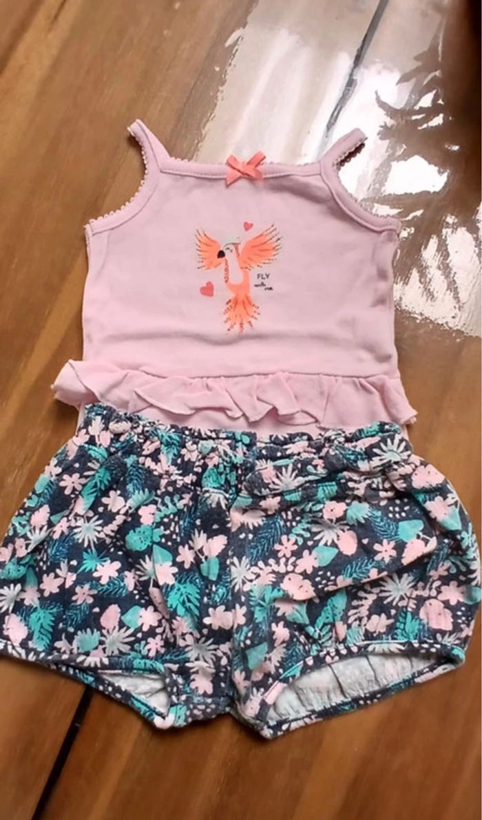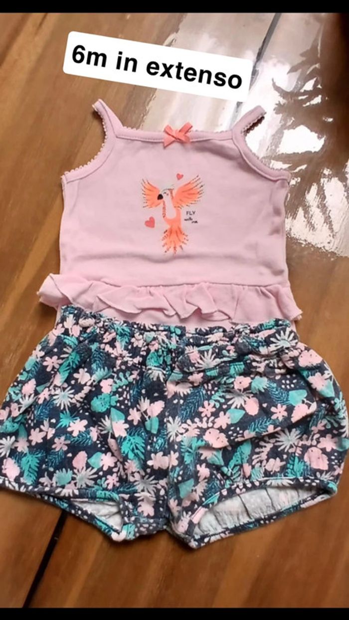 Tenue 3 pièces 68cm = 6m In extenso Coton Body debardeur rose motif perroquet et froufrou Short fleuri, ceinture élastique, resserré aux cuisses T-shirt MC rose motif flamand rose 5€ Porté par un seul enfant 👀👀👀⬇️⬇️⬇️👀👀👀 #monvidegrenieronlinebb #monvidegrenieronlinebb6m 🦩