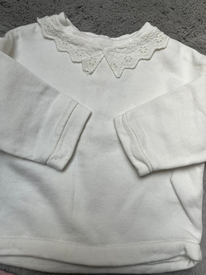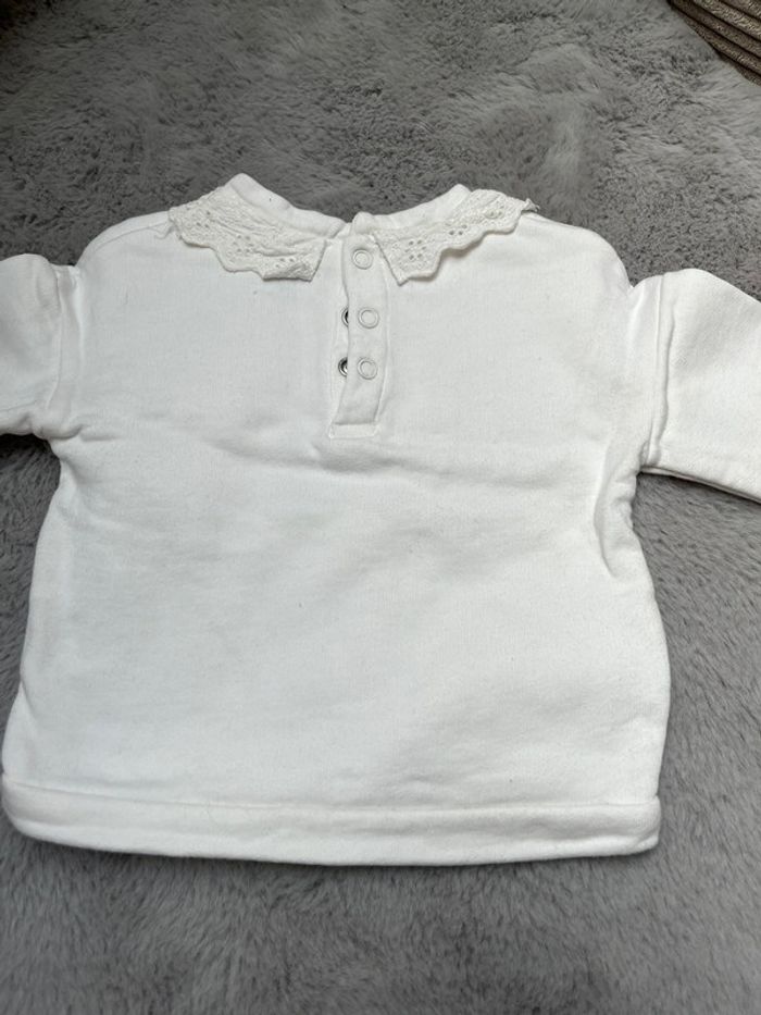 Ensemble de chez Kiabi eco conception 💯 % coton Un bas type sarouel rose pale 18m Un haut sweat matière douce à l’intérieur blanc col dentelle en 12m Porté par un seul enfant 👀👀👀⬇️⬇️⬇️👀👀👀 #monvidegrenieronlinebb #monvidegrenieronlinebb12m #monvidegrenieronlinebb18m