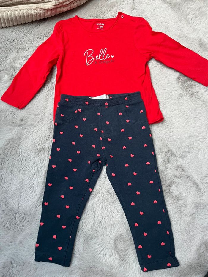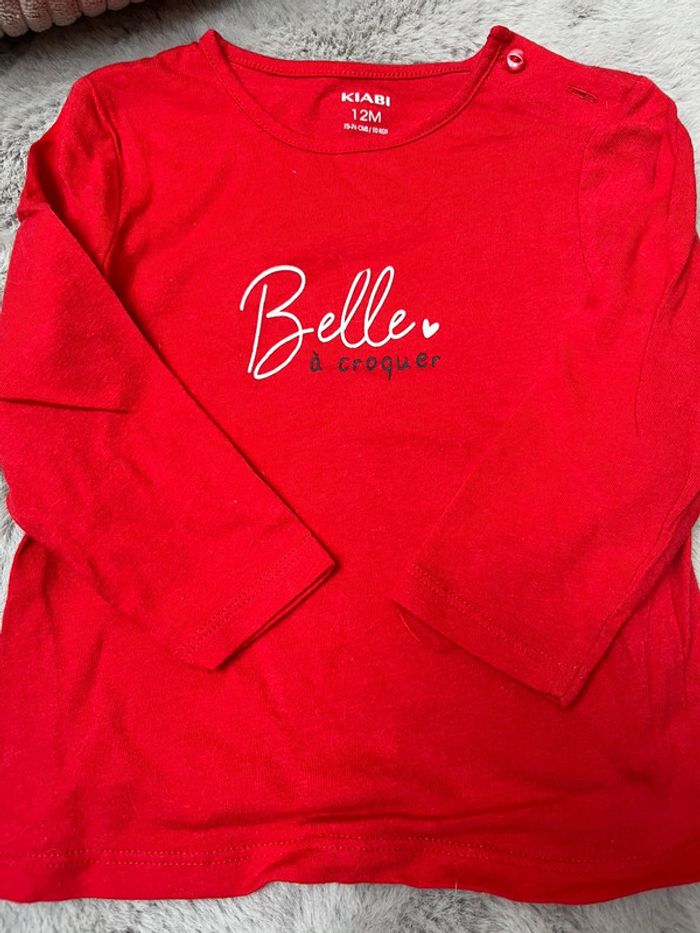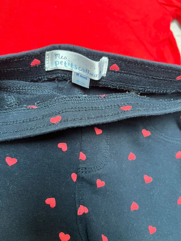 Jolie ensemble composé de : Un pantalon strech bleu marine motif cœurs rouges, mes petits cailloux en 18m Un t shirt manches longues rouge « Belle à croquer » , Kiabi , 12m Porté par un seul enfant 👀👀👀⬇️⬇️⬇️👀👀👀 #monvidegrenieronlinebb #monvidegrenieronlinebb12m #monvidegrenieronlinebb18m