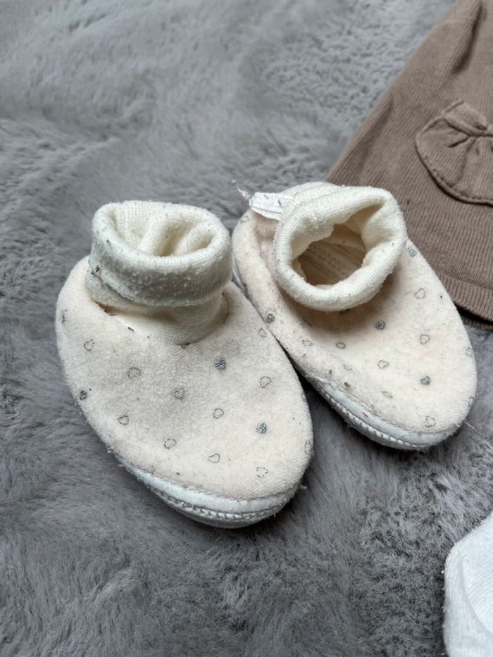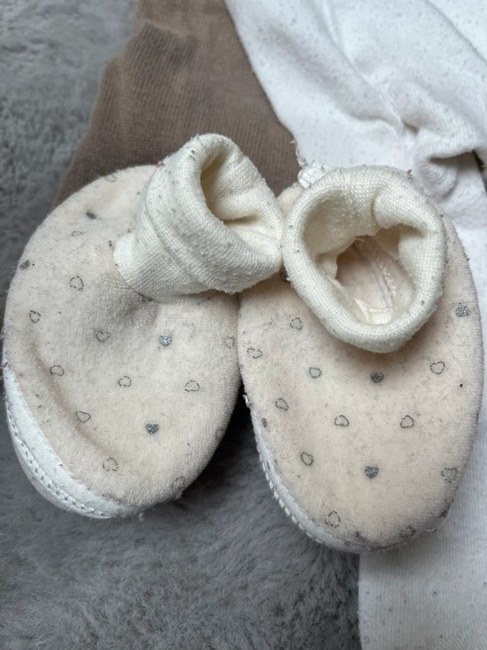 Ensemble Kiabi en 6m Robe kaki vert/gris , boutonné dans le dos Une paire de collant 3/6m blanc avec petit ours aux chevilles Et les chaussons pour avoir les pitoux bien au chaud ☺️ 👀👀👀⬇️⬇️⬇️👀👀👀 Exemple 5 articles à 1€ = 3,50€ #monvidegrenieronlinebb #monvidegrenieronlinebb6m