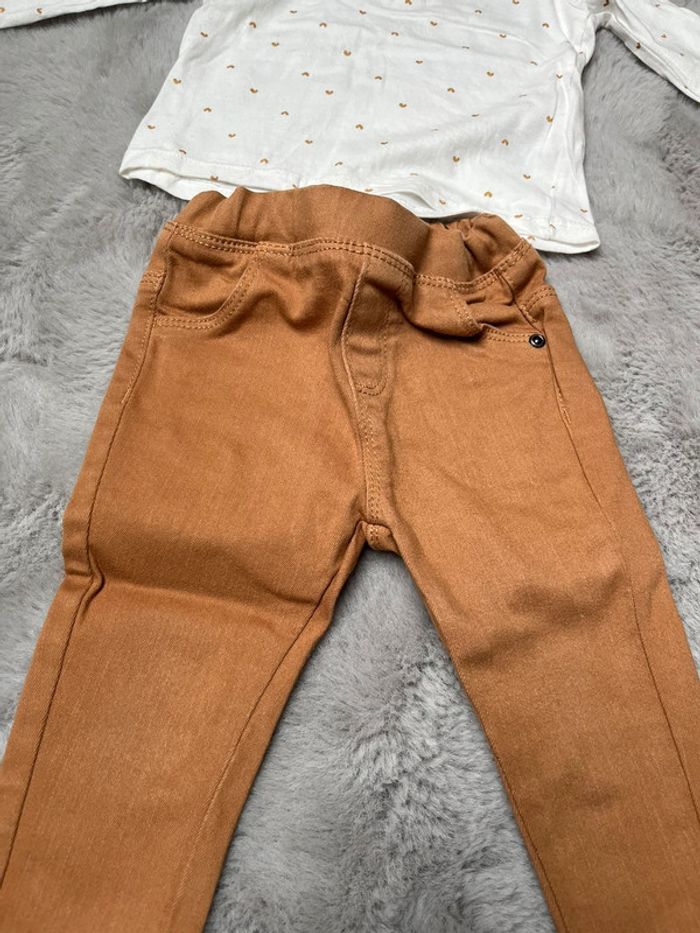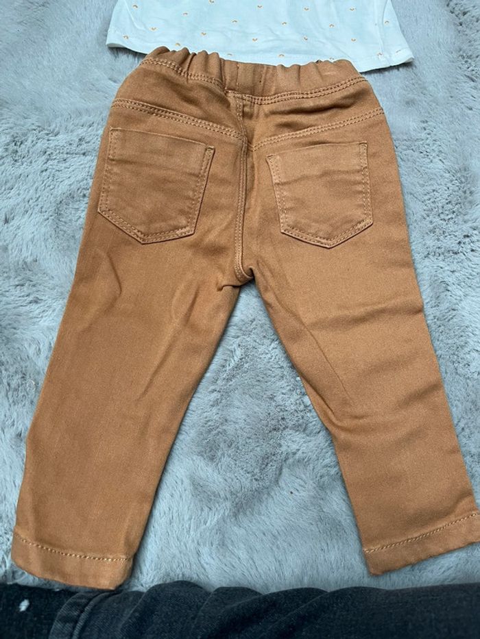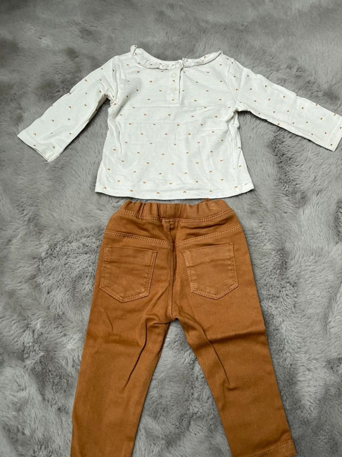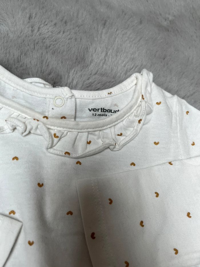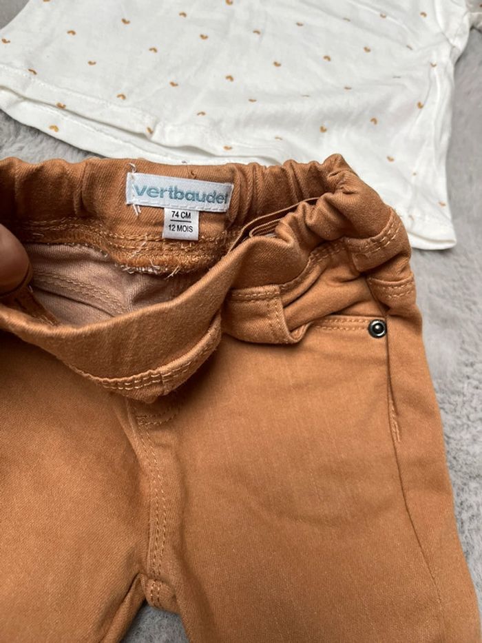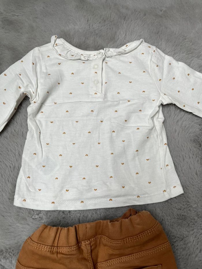 Ensemble Verbaudet 12m Petit haut / t shirt manches longues blanc petit cœur doré , col Claudine Bas / pantalon type skinny marron camel, élastique à la taille Tenue porté par un seul enfant 👀👀👀⬇️⬇️⬇️👀👀👀 #monvidegrenieronlinebb #monvidegrenieronlinebb12m