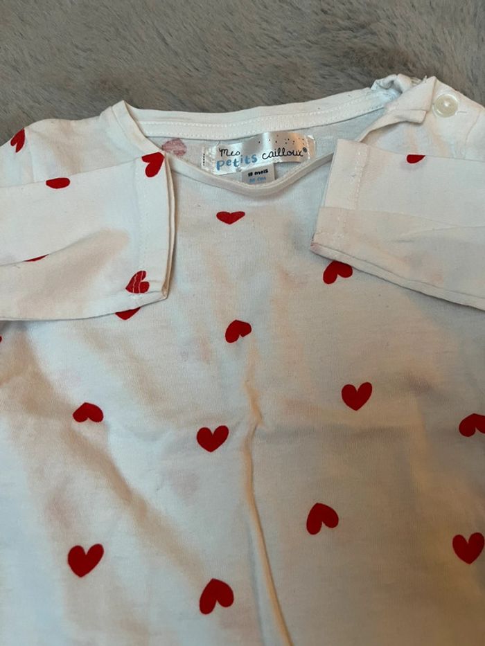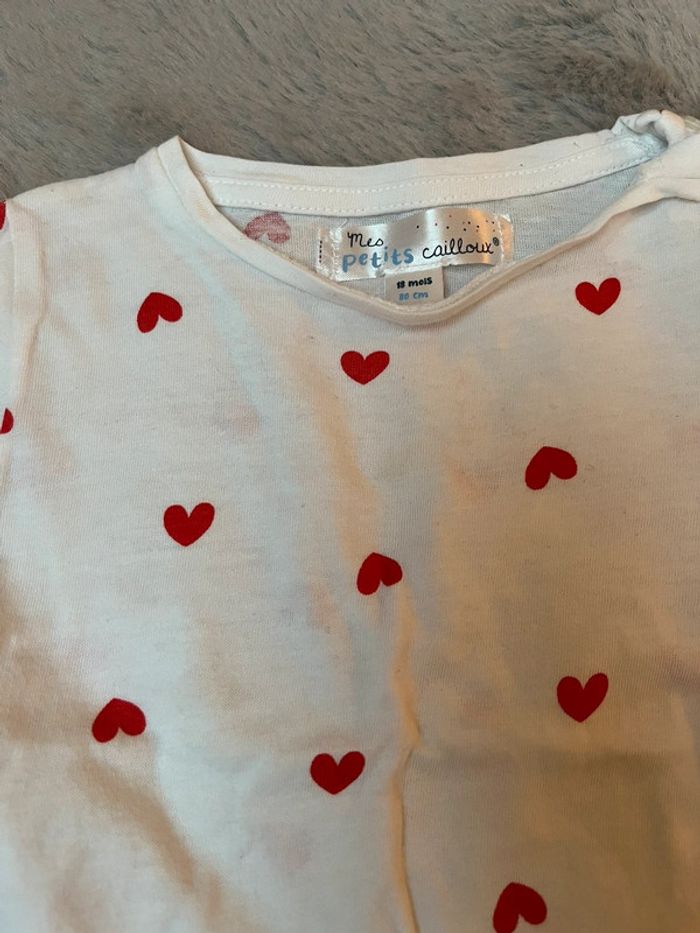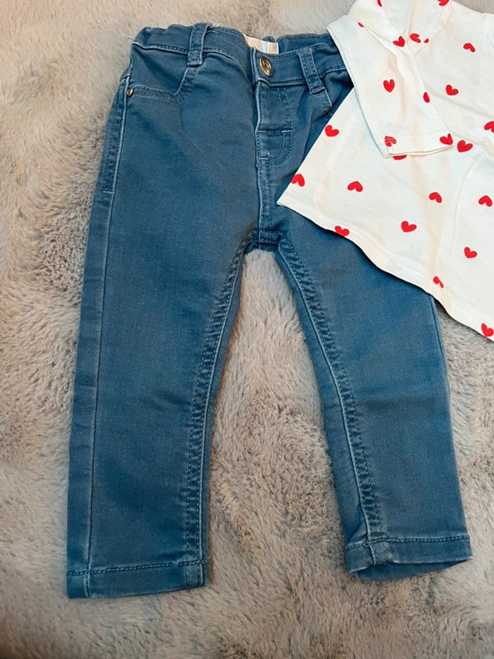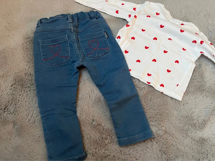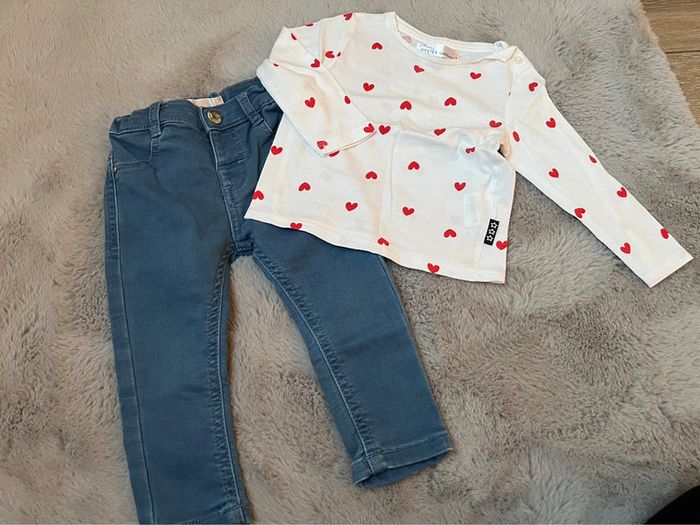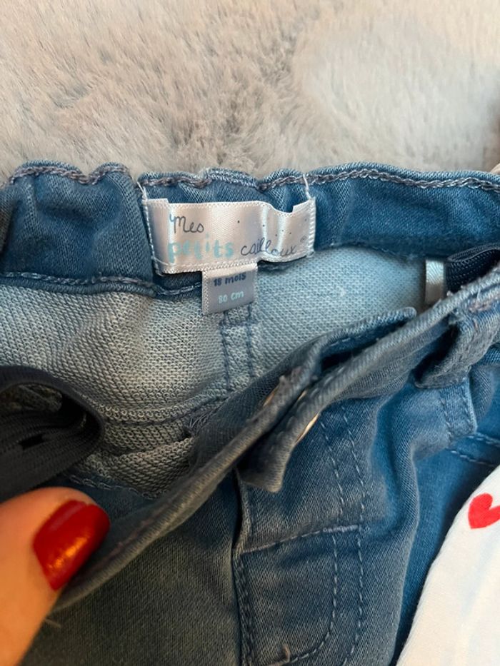 Ensemble mes petits cailloux en 18m/80cm Un jeans skinny bien strech , élastique pour resserrer la taille Un t shirt blanc motif cœur rouge ♥️ Très bon état porté par un seul enfant 👀👀👀⬇️⬇️⬇️👀👀👀 #monvidegrenieronlinebb #monvidegrenieronlinebb18m
