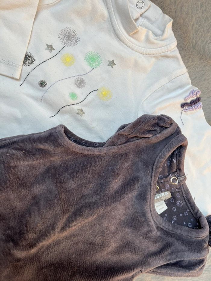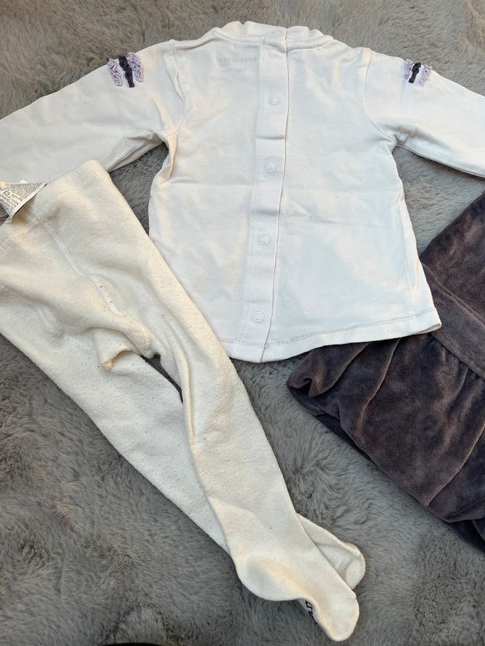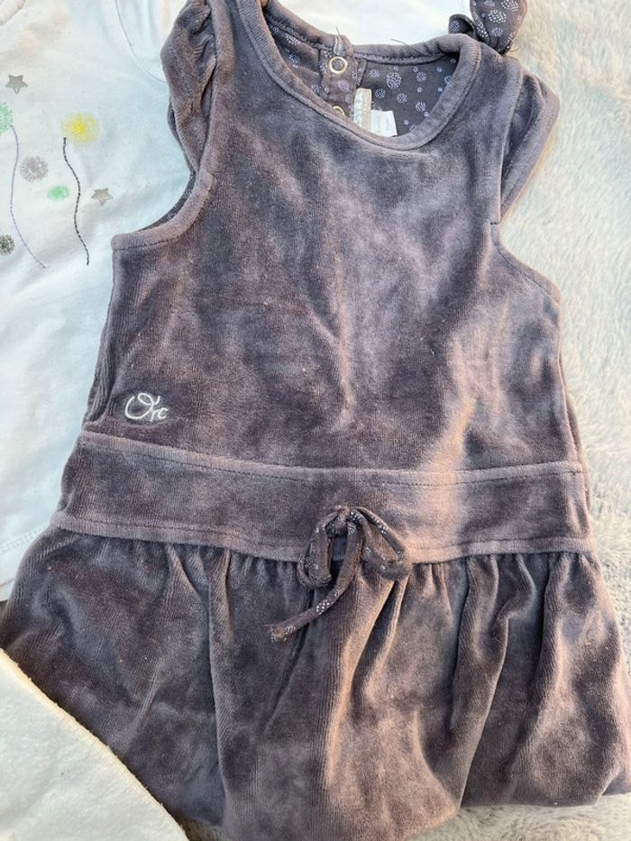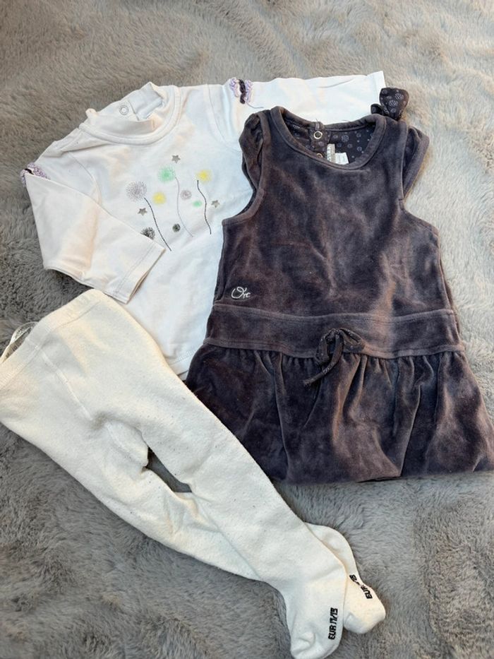 Ensemble hiver bébé fille orchestra 9m Une robe effet boule matière type velours couleur gris mauve violet Pull col montant blanc avec le rappel du violet Et une paire de collant Kiabi 17/19 6/12m 👀👀👀⬇️⬇️⬇️👀👀👀 #monvidegrenieronlinebb #monvidegrenieronlinebb9m 👧🏼