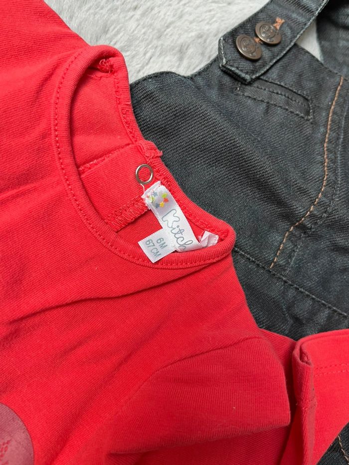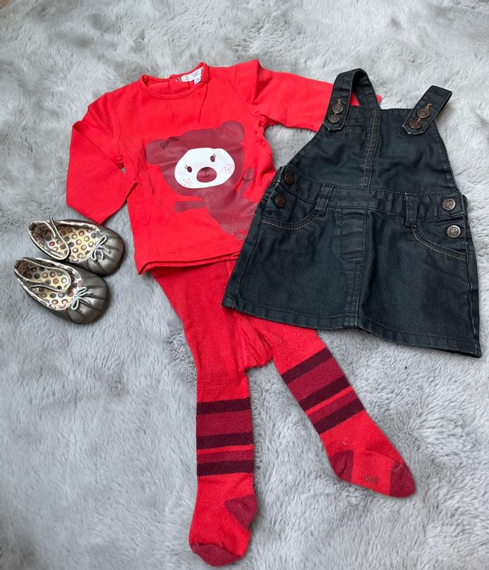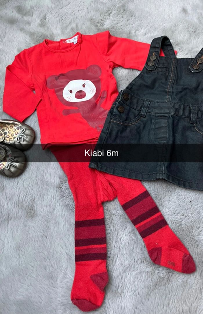 Ensemble / look bébé fille 6 mois Kiabi kitchoun Une robe en jeans à bretelles bleu/noir type enduit 6m Un t shirt manches longues rouges 6m Une paire de collant assorti rouge 3/6m 15/16 Et les petites ballerines rouge bordeaux vernis 👀👀👀⬇️⬇️⬇️👀👀👀 #monvidegrenieronlinebb #monvidegrenieronlinebb6m