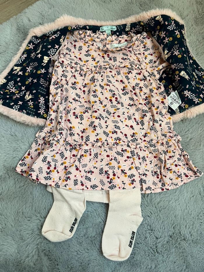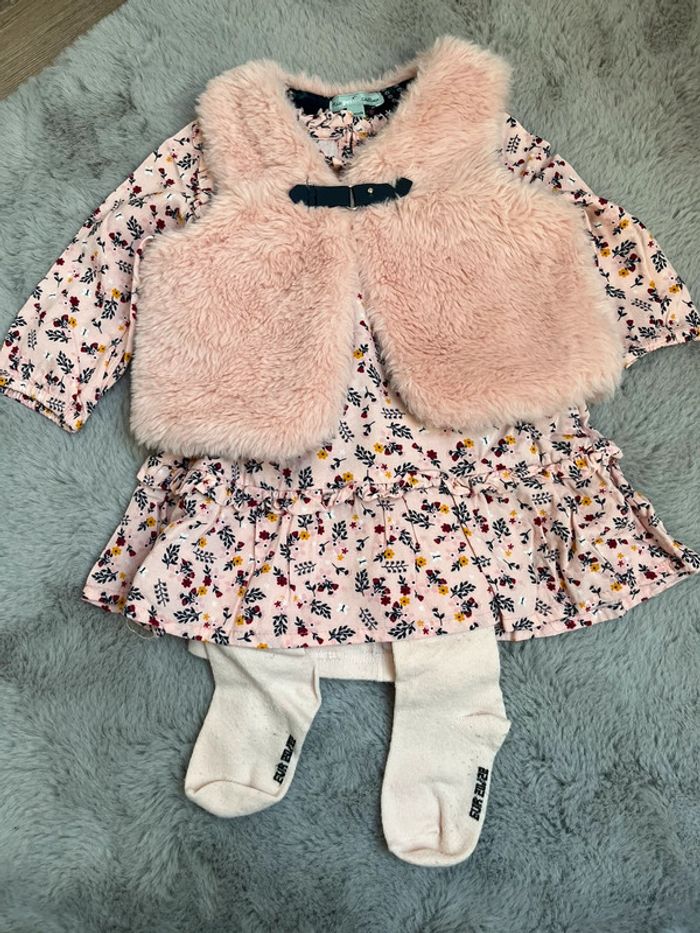 Jolie ensemble mes petits cailloux Robe rose fleuri Son gilet fausse fourrure rose Et une paire de collant rose pale Kiabi 20/22 Très bon état porté par un seul enfant 👀👀👀⬇️⬇️⬇️👀👀👀 #monvidegrenieronlinebb #monvidegrenieronlinebb12m