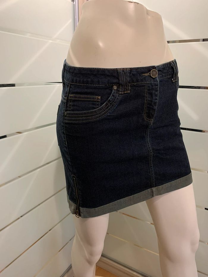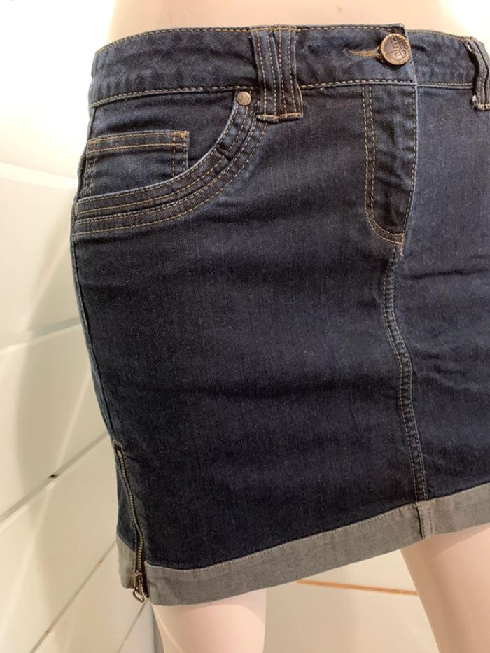 très jolie jupe en jeans couleur bleu jeans brut plutôt strech jolies finissions de couture original avec ses fermetures sur les cotés t 38 camaïeu parfait état je l’adore mais trop petite pour moi maintenant 😤😭