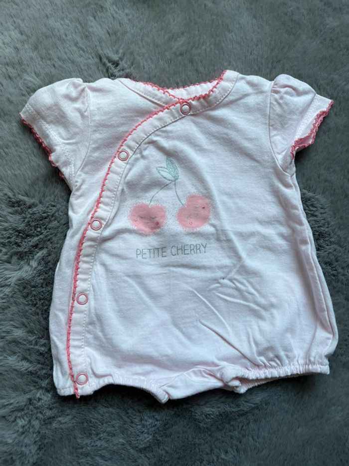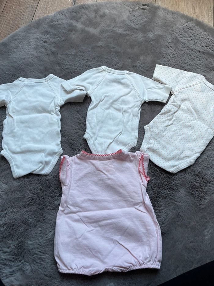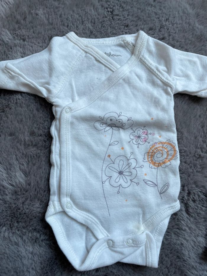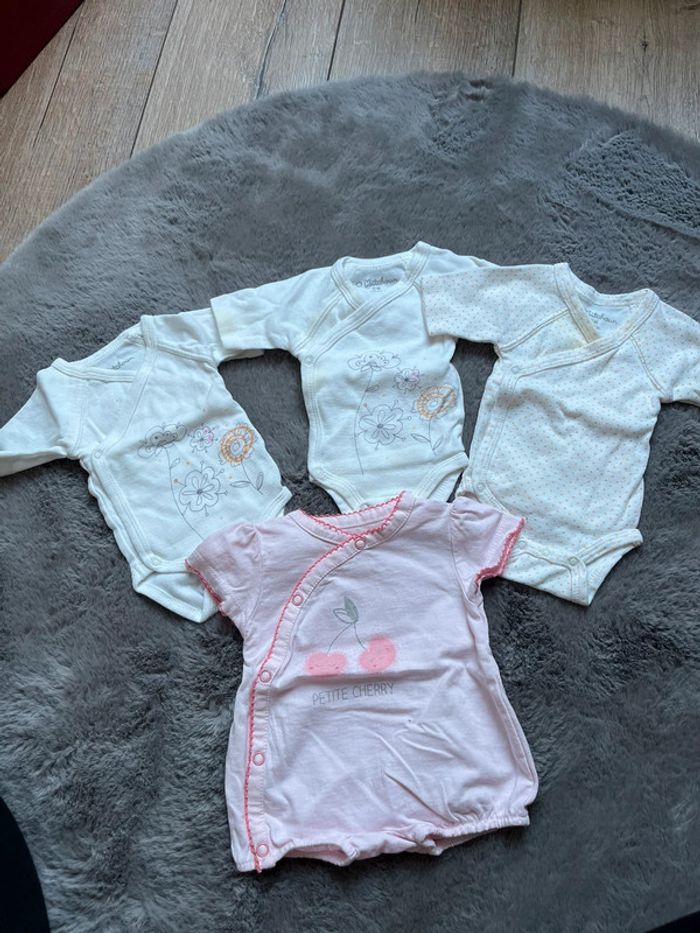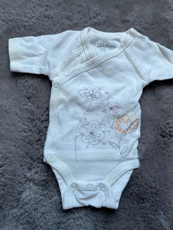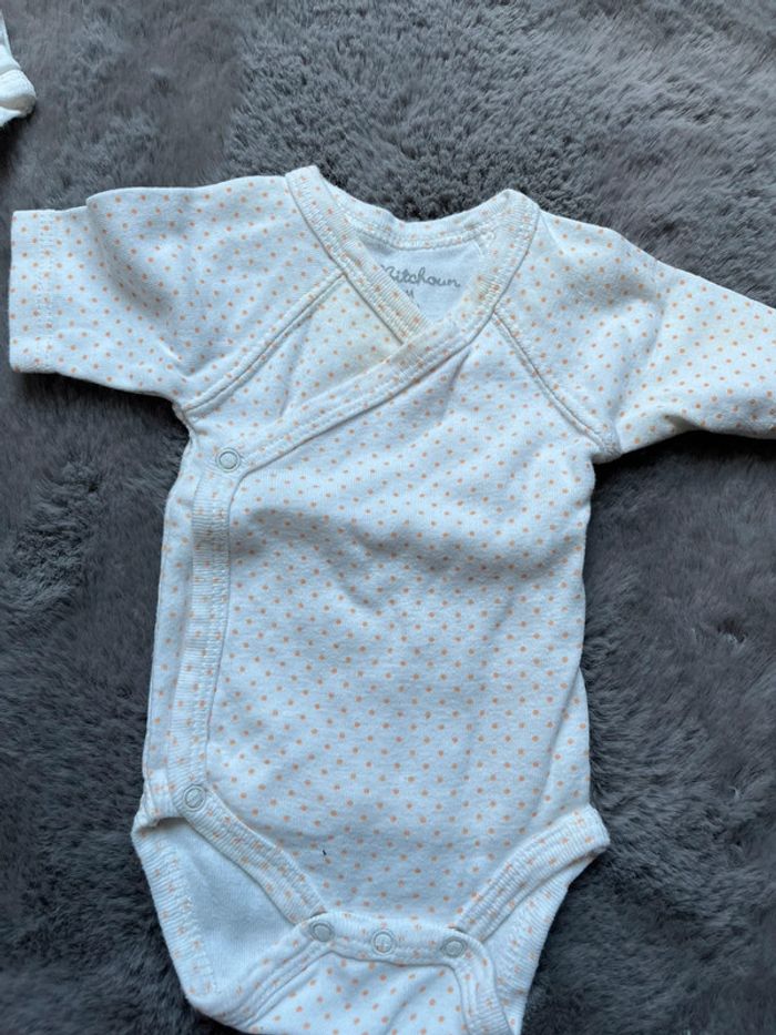 Lot pour naissance bébé fille été 0m / 50cm 3 bodies / body kitchoun , petites auréoles Et une combinaison été in extenso