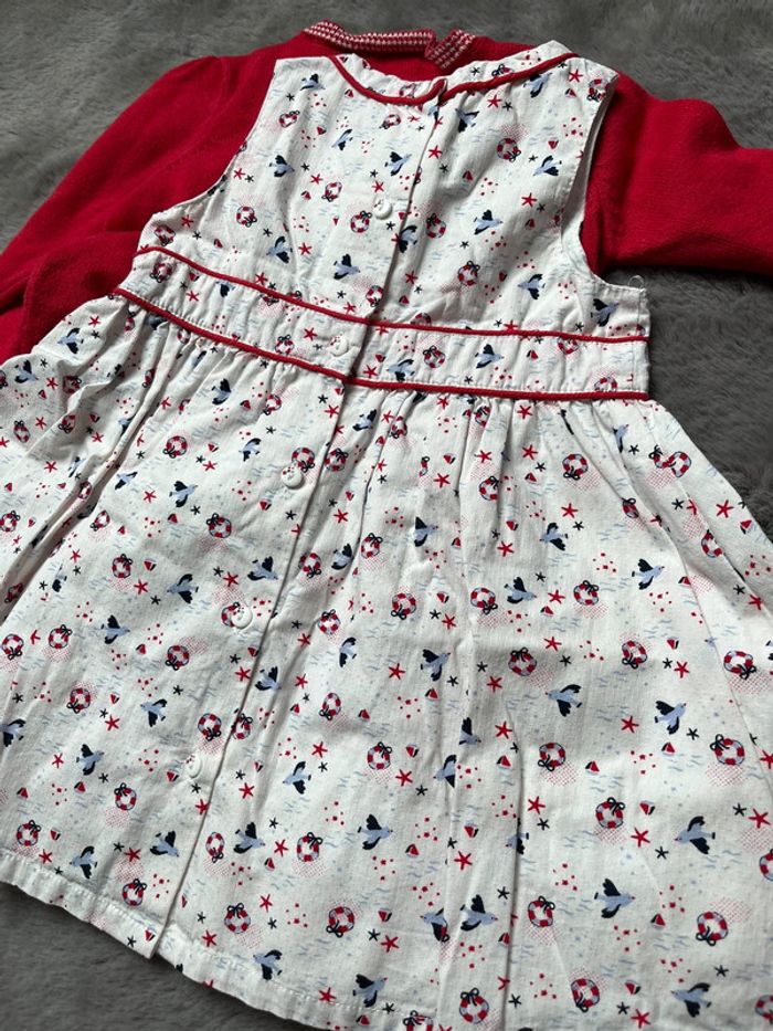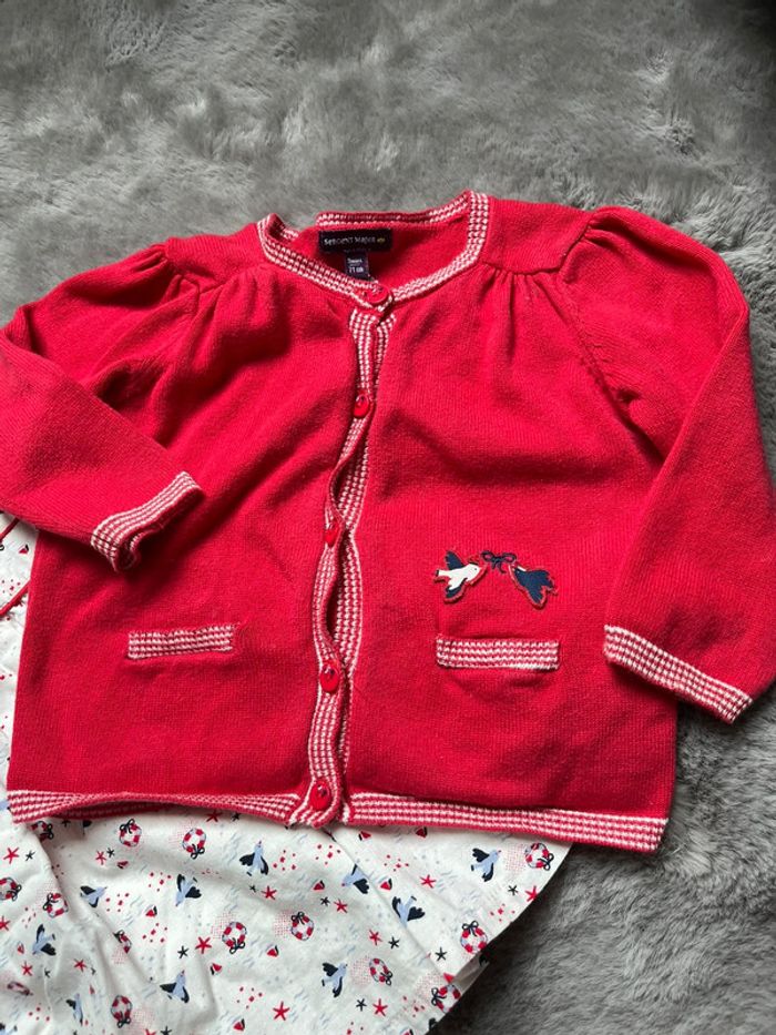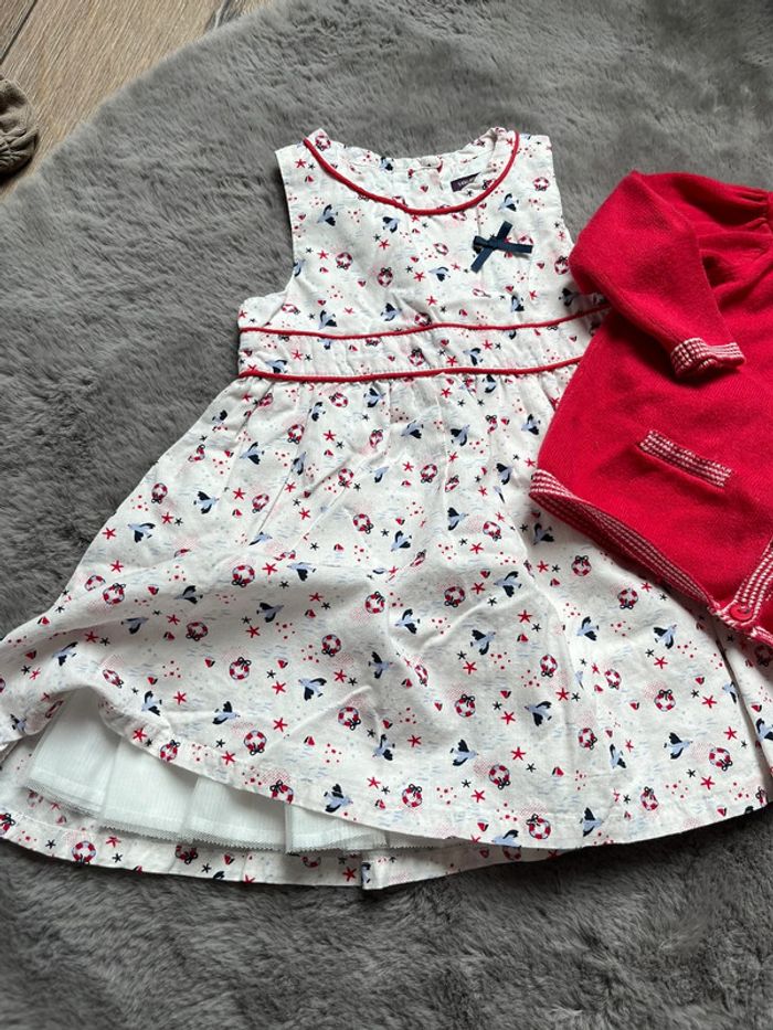 Très jolie robe de Sergent Major Blanc écru au motif marin rouge et bleu , avec une jolie doublure , peu porté son gilet assortie rouge & son bloomer 9 mois Idéal cérémonie , mariage , baptême 👀👀👀⬇️⬇️⬇️👀👀👀 #monvidegrenieronlinebb #monvidegrenieronlinebb9m