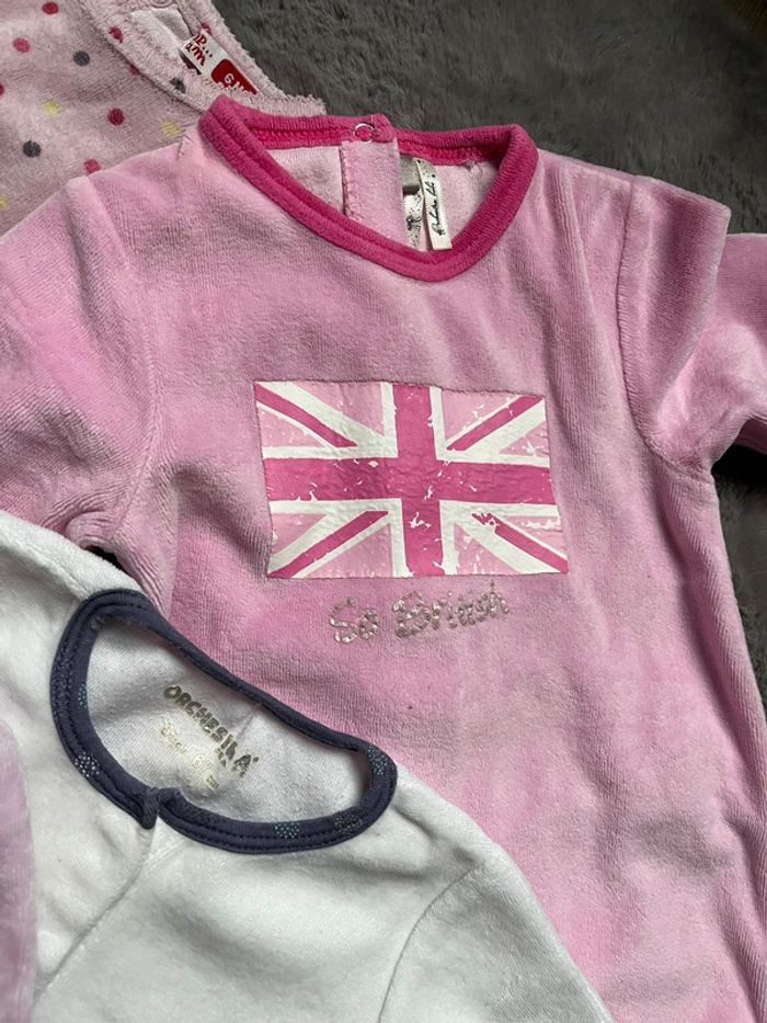 4 pyjamas taille 6 mois Type velours Orchestra un rose avec le drapeau d’Angleterre pressions à l’arrière 🇦🇮 Orchestra blanc motif violet pressions devant 💜 Disney Minnie mauve violet pressions à l’avant 🐭 DPAM mauve violet à pois pressions arrière🍥 Vêtements portés par 2/3 enfants 👀👀👀⬇️⬇️⬇️👀👀👀 #monvidegrenieronlinebb #monvidegrenieronlinebb6m