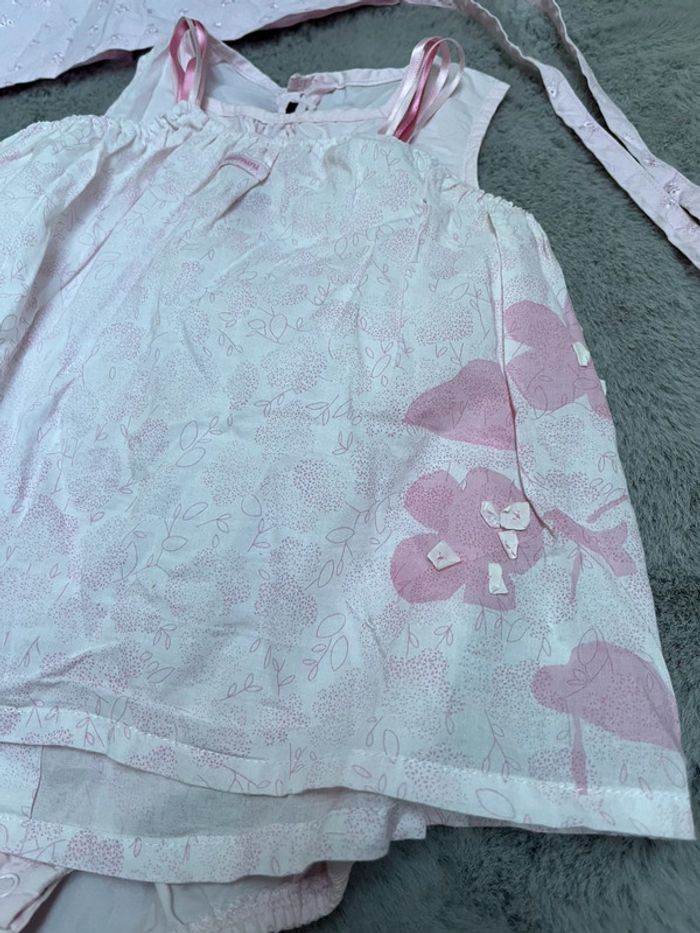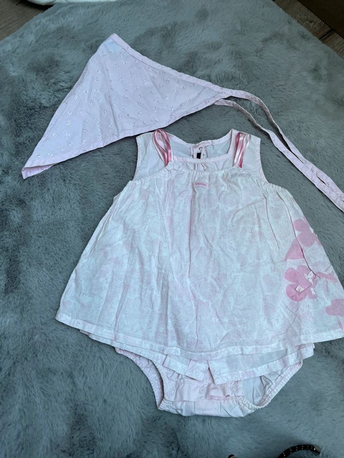 Jolie ensemble de la marque Catimini Pour bébé fille été 12 mois Barboteuse body rose pale idéal pour les journées chaudes Et sa tunique par dessus J’ajoute un fichu triangle Lorie pour protéger la tête de bébé 👀👀👀⬇️⬇️⬇️👀👀👀 #monvidegrenieronlinebb #monvidegrenieronlinebb12m #monvidegrenieronlinecatimini 🌈 ☀️