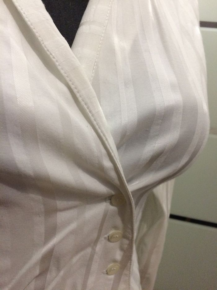 Jolie Chemise ou chemisier de chez Etam t 42 Blanc , légèrement satiné matière extensible Blanc cœur croisé #monvidegrenieronline42 #monvidegrenieronlinewomen