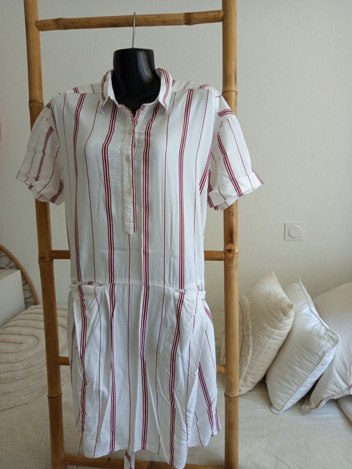 Robe légère rayée IKKS Women taille 36 qui peut aller jusqu'à un petit 38 Très peu portée Matière légère & agréable 👍 Ceinture à nouer à l'arrière