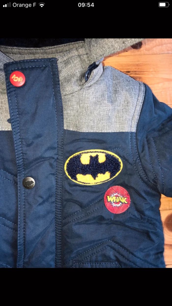 Blouson Batman, jamais porté (juste lavé) très chaud, la capuche est amovible taille 12 mois #griotte3garçon12mois