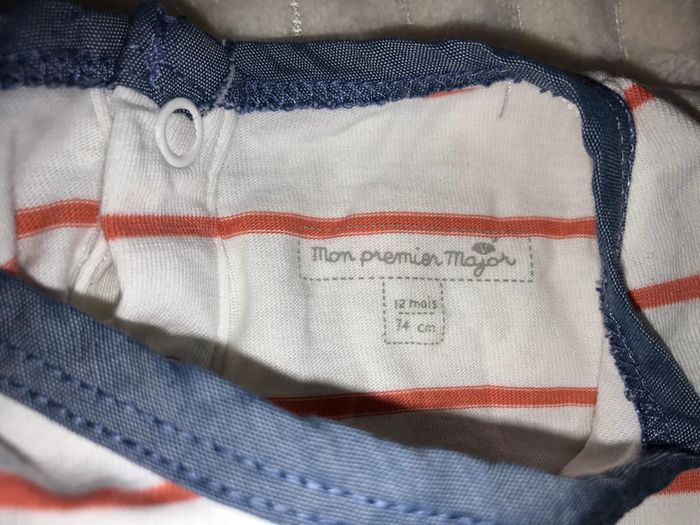 T-shirt mon premier major, Boutons à l'avant et pressions derrière 12mois/74 cm En parfait état #griotte3garçon12mois