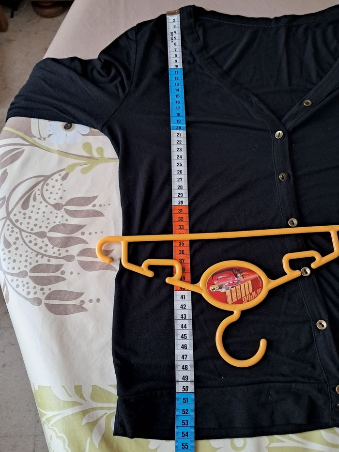 Gilet fin . 3 boutons bas des manches Plus étiquette de taille Voir photos pour les mensurations ni matières (Belle sœur qui coupe quand ça lui gene) Épaules à épaules 40cm Aisselles à Aisselles 45cm Longueur 54cm